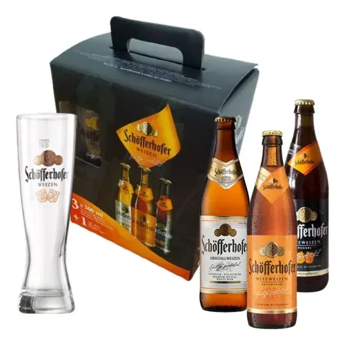 Disfruta de la deliciosa Cerveza Schöfferhofer, una Weizen de origen alemán que te sorprenderá con su sabor frutal y refrescante. Este exclusivo gift pack incluye un vaso Weizen, diseñado para realzar cada sorbo y potenciar tu experiencia cervecera. Con una graduación alcohólica de 5.0%, es ideal para aquellos que buscan una bebida equilibrada y de aroma envolvente.